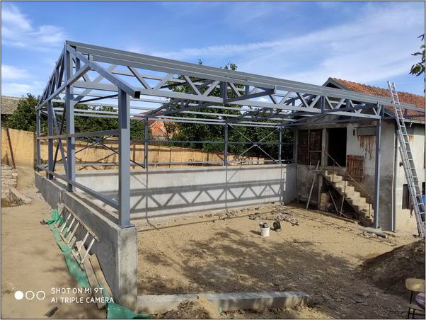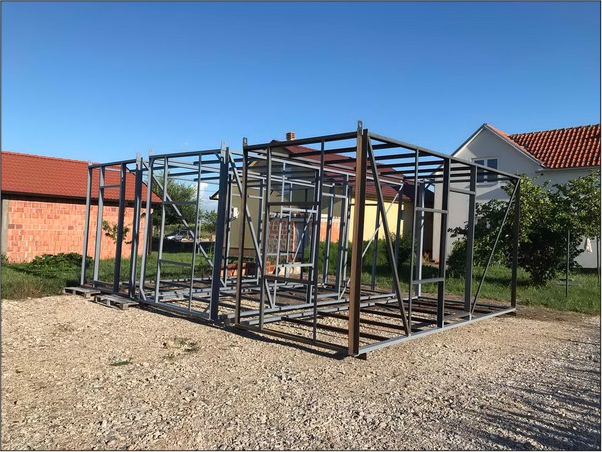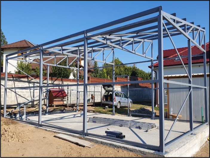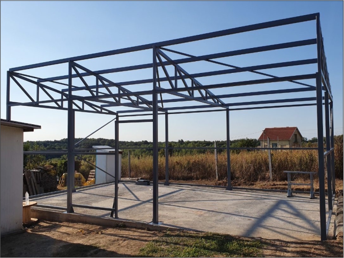 Čelična konstrukcija za objekat u Beogradu, širine 7m, dužine 12m i visine 4m. Konstrukcija je izrađena od šupljih čeličnih profila. Spajanej svih profila je izvršeno MAG zavarivanjem, osim montažnih šavova koji su izrađeni E postupkom.