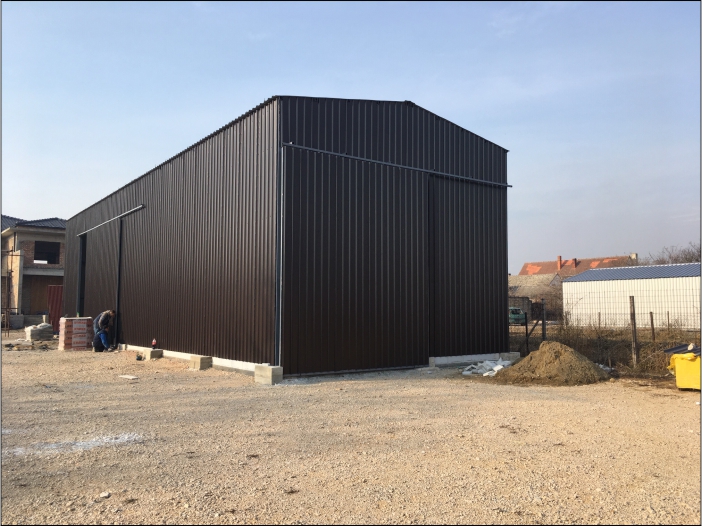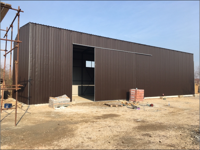Montažna hala u Staroj Pazovi dimenzije 8x24x6m. Noseća konstrukcija je od čeličnih profila, krovna konstrukcija su rešetkasti nosači. Na hali su izrađena klizna vrata dimenzija 5x5m sa dve strane. Ceo objekat je prekriven i plastificiranim trapeznim limom.