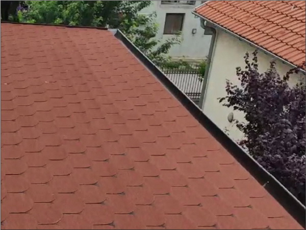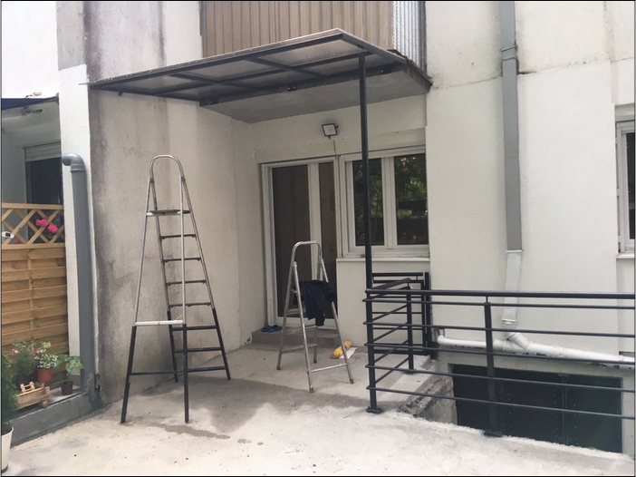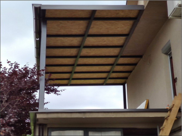Nadstrešnica je dužine 7m i širine 3m, konstrukcija je napravljena od čeličnih kutijastih profila koji su spojeni zavarivanjem. Za pokrivanje korišćeni su sledeći materijali: OSB ploca, ter papir i na kraju tegola crvene boje.