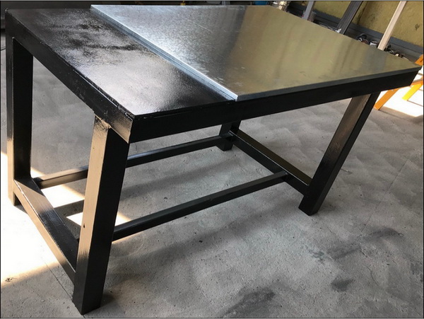 Radni sto za zanatske radionice. Konstrukcija je izrađena od čeličnih kutijastih profila međusobno spojenih zavarivanjem. Radna površina se sastoji iz dve radne ploče: lim debljine 10mm predviđenog za bravarsko kovačke delatnosti, i drugi deo koji se sastoji od drveta koje je obloženo galvanizovanim limom i predviđen je za fini rad.
