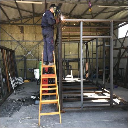 Čelična konstrukcija za mobilne kontejnere namenjena za smeštaj ljudi. Spoljašnje dimenzije konstrukcije su 6×2.8×2.4m. Zavarivanje je izvedeno MAG postupkom.